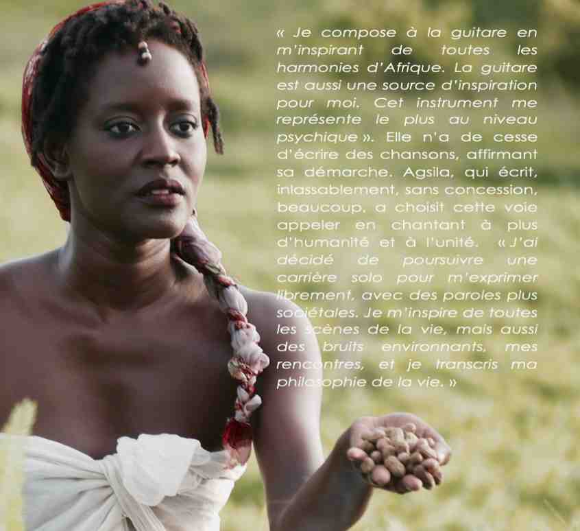 Agsila, qui écrit, inlassablement, sans concession, beaucoup, a choisit cette voie appeler en chantant à plus d’humanité et à l’unité. « J’ai décidé de poursuivre une carrière solo pour m’exprimer librement, avec des paroles plus sociétales. Je m’inspire de toutes les scènes de la vie, mais aussi des bruits environnants, mes rencontres, et je transcris ma philosophie de la vie. » (cf African diva par Sasha Gankin – BBC).